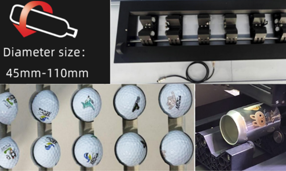 9060UF Series Model 9060UF 9060UF PRO Number of printhead 3 3 Print colors of Numbers 4 8 Ink Colors CMYK+Wh+Va CMYKLcLmLkOr+Wh+Va Printing area 9000X600mm Max Media Height 180mm Cylinder Diameter 110mm UV Curing System LED Lifting Functionality Auto platform adsorption Vacuum Print Resolution 720/1200/1800/2400 Power Voltage 110/220V System of Control Win/10/Win11 RIP Software Flexi or ONYX Printing Environment Temperature 20-28 Graphic Format Humidity 40%--60% Printer dimension(LxWxH) 2000x1350x1200 Net Weight 230KG option Rotary attachment -