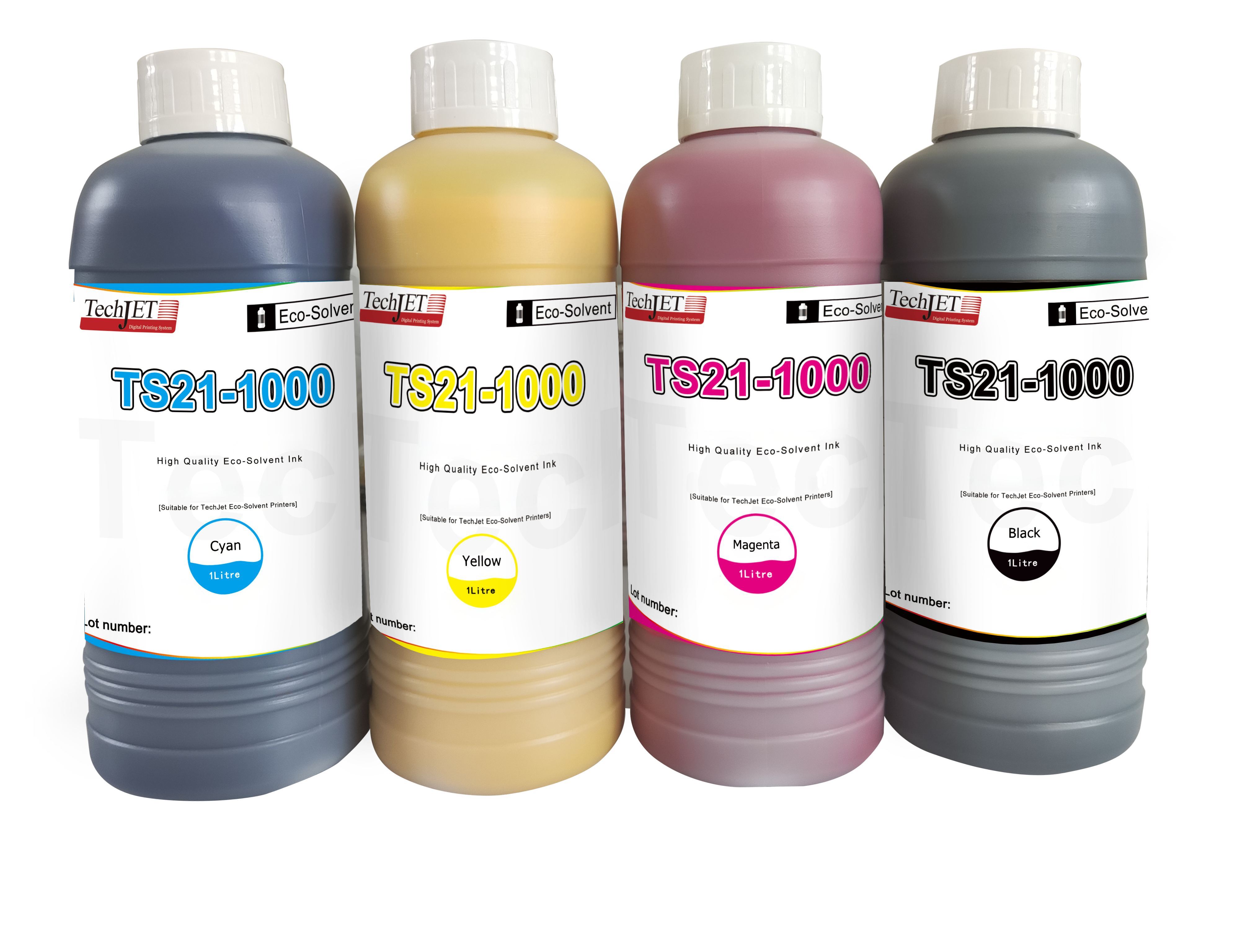 High-quality ink specially formulated for TechJet series printers, available in CMYK.
